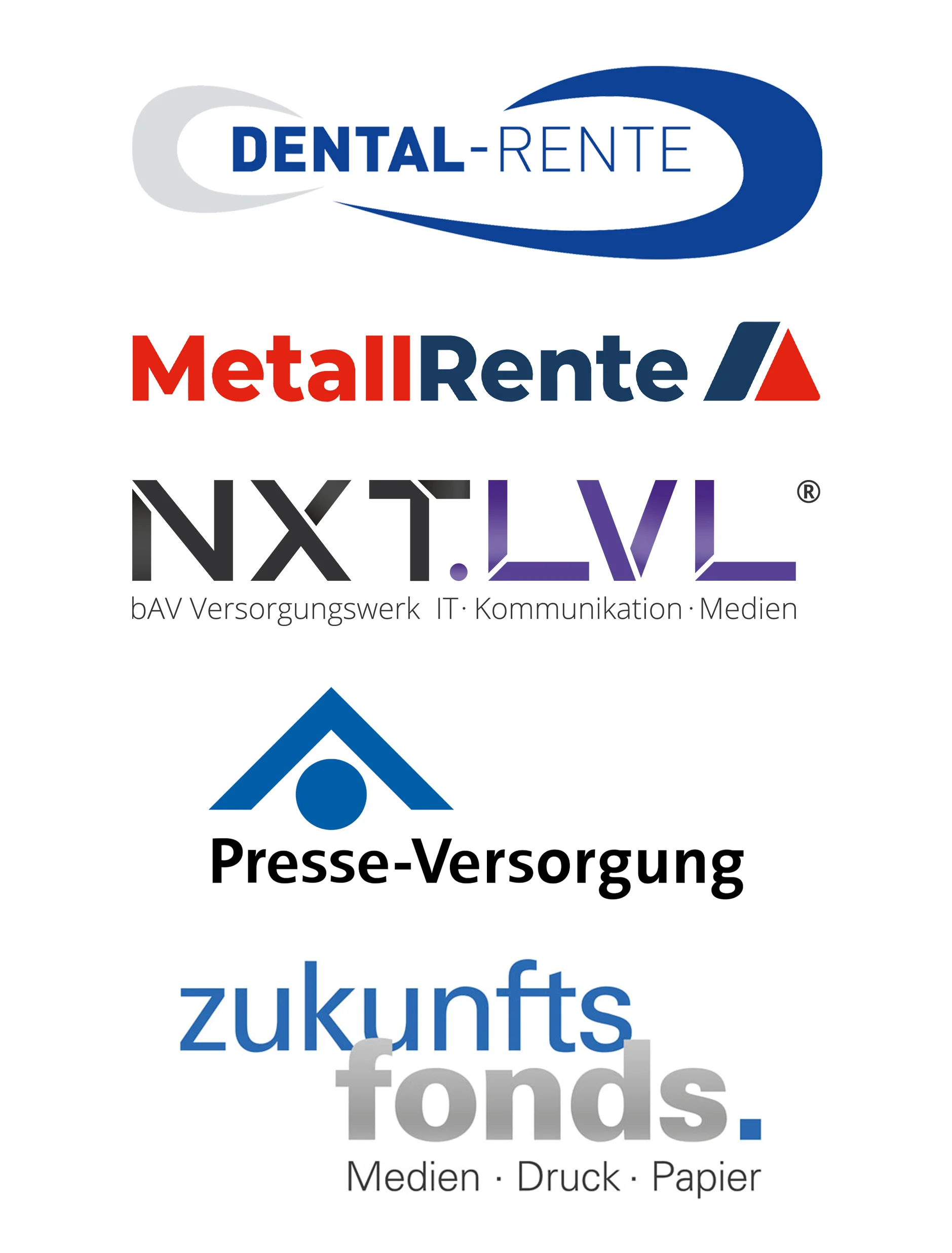 Für Ihr Unternehmen ist der Versorgungsträger vor dem Hintergrund einer unaufwändigen und serviceorientierten Abwicklung von Bedeutung. Für Ihre Mitarbeiter steht die Solidität und langfristige Finanzstärke im Vordergrund. Wir kooperieren deshalb nur mit den ersten Adressen unter den Deutschen Versorgungsunternehmen. Unsere Partner verfügen alle über beste Bonitätsratings, haben in der Vergangenheit regelmässig attraktive Renditen erzielt und spielen auch vom Produktportfolio her eine wesentliche Rolle in der betrieblichen Altersvorsorge im Mittelstand.
