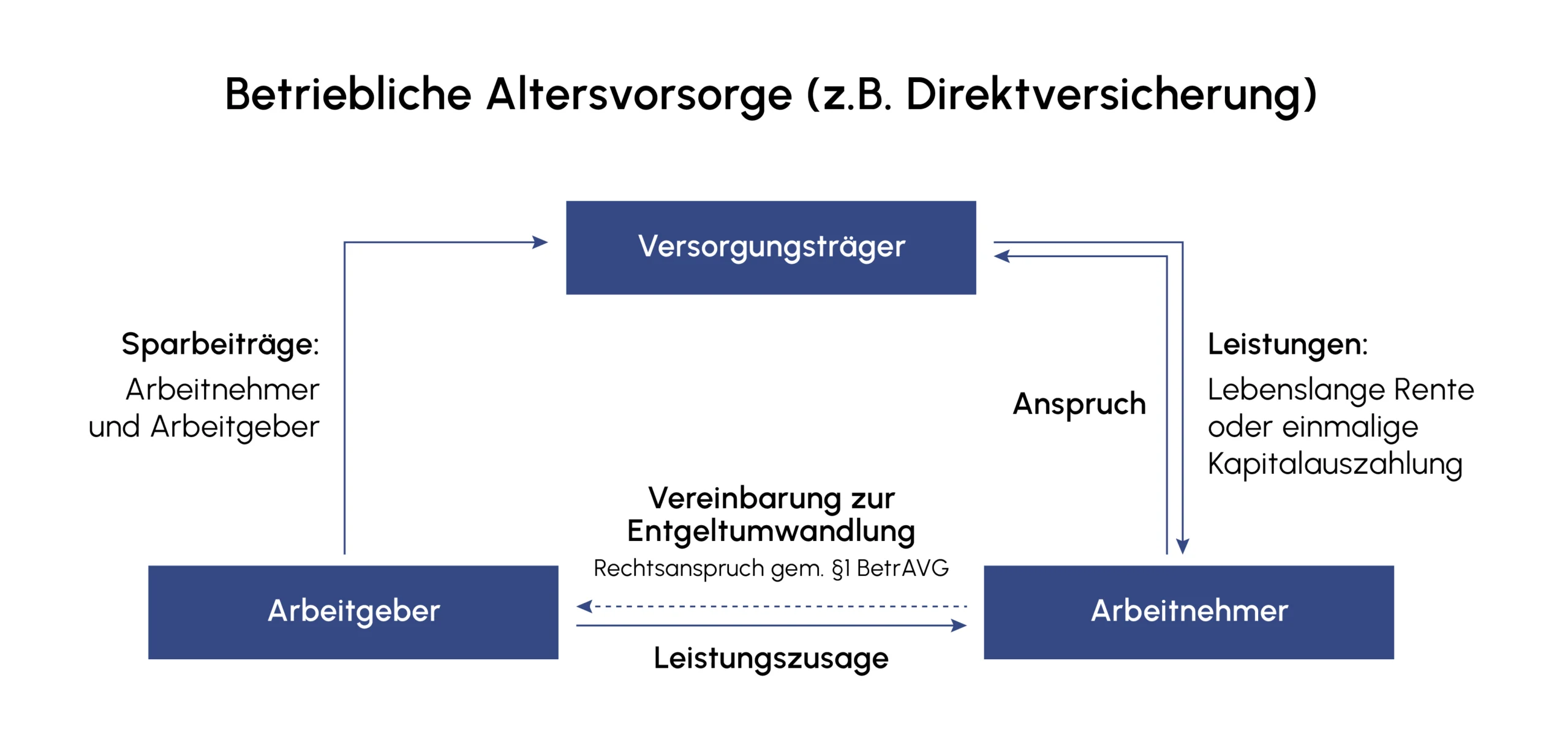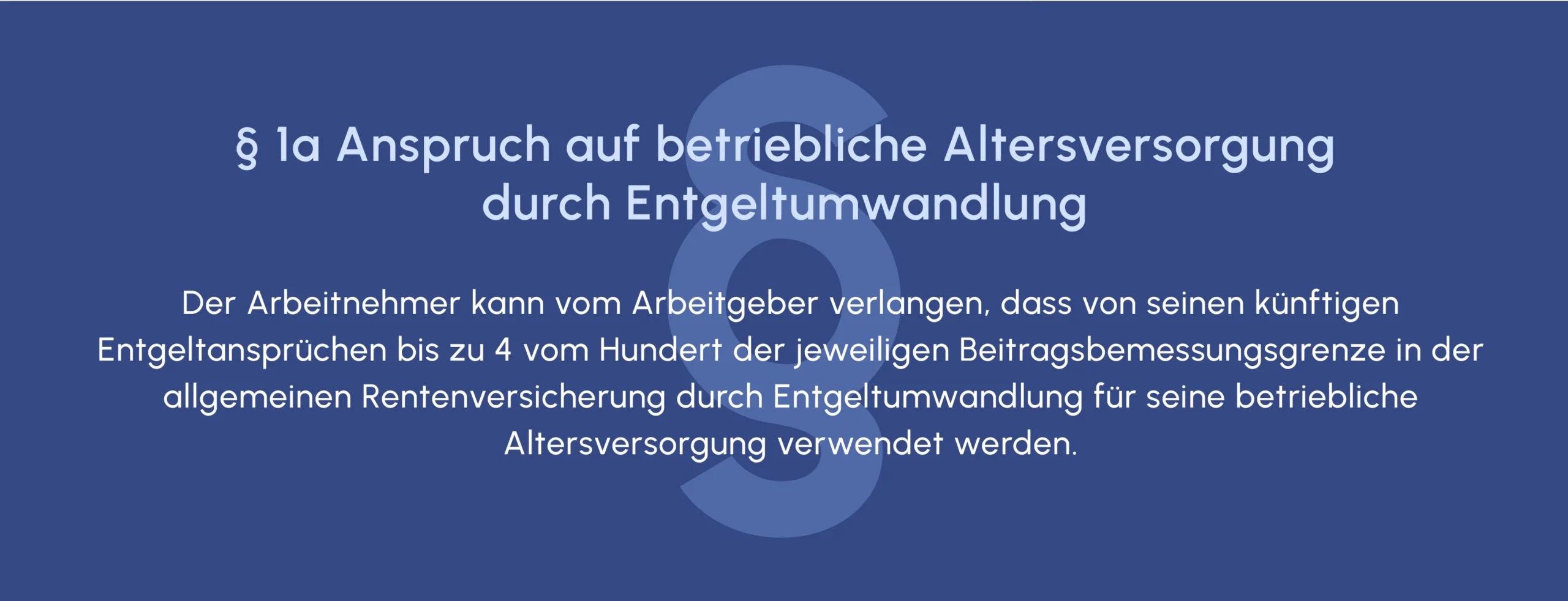 Gemäß §1 BetrAVG (Betriebsrentengesetz) haben Sie als Arbeitnehmer einen Rechtsanspruch auf Nutzung der betrieblichen Altersversorgung gegenüber jeden Arbeitgeber in Deutschland. Dieser Anspruch gilt für alle sozialversicherungspflichtig Beschäftigten, d.h. kaufmännische wie auch gewerbliche Arbeitnehmer, übrigens auch für geringfügig Beschäftigte (€ 520,-). Er wird geltend gemacht durch einfache Anfrage des Arbeitnehmers beim Arbeitgeber nach staatl. geförderter bAV. Diese Form der Freiwilligen Zusatzversorgung ist für Arbeitnehmer höchst effizient. Im Vergleich zur hoch geförderten betrieblichen Versorgung , ist die private Rentenversicherung ohne Zuschüsse zum Auslaufmodell geworden, während sich die Riester-Rente tendenziell nur für kinderreiche Familien mit geringem Einkommen rechnet. In dieser Situation bietet die bAV für 90 % aller Arbeitnehmer die höchsten staatl. Zuschüsse.
